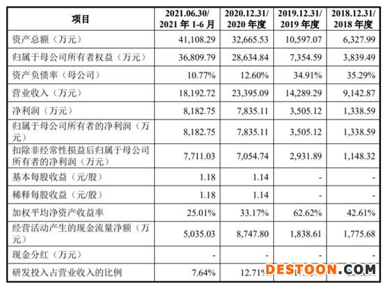 2018年、2019年、2020年、2021年1-6月,峰岹科技的营业收入分别为9142.87万元、14,289.29万元、23,395.09万元、18,192.72万元;净利润分别为1338.59万元、3505.12万元、7835.11万元、8182.75万元;扣除非经常性损益后归属于母公司股东的净利润分别为1148.32万元、2931.89万元、7054.74万元、7711.03万元;经营活动产生的现金流量净额分别为1775.68万元、1838.61万元、8747.80万元和5035.03万元。
