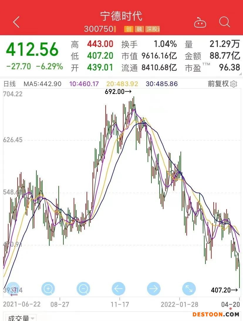 20日早盘,宁德时代股价创出本轮调整新低,总市值跌回万亿以内,自去年12月高点已连续回调近40%。