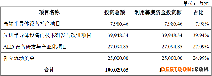 拓荆科技本次发行募集资金总额为227,283.12万元,扣除发行费用后,募集资金净额212,759.73万元。该公司最终募集资金净额比原计划多112,730.08万元。拓荆科技于2022年4月14日披露的招股说明书显示,该公司拟募集资金100,029.65万元,拟分别用于高端半导体设备扩产项目、先进半导体设备的技术研发与改进项目、ALD设备研发与产业化项目和补充流动资金。