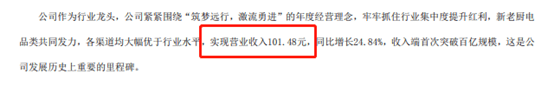 年报中将101.48亿元错写为101.48元,显示“实现营业收入101.48元,同比增长24.84%”。