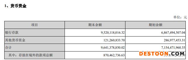 卫星化学去年货币资金期末余额合计为96.41亿元,其中,银行存款为95.20亿元,存放在境外的款项总额为8.70亿元,期末其他货币资金中895万元系保函保证金,2886.80万元系票据池保证金,2185.55万元系信用证保证金,1668.80万元系结售汇交易保证金,均使用受限。