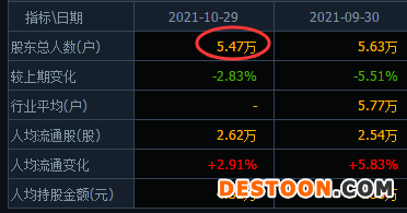 公开信息显示,截至2021年10月29日,*ST艾格最近披露的股东户数为5.47万户。