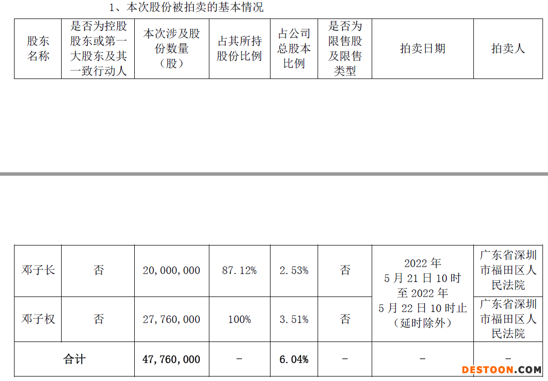 也就是说,这次将被司法拍卖的股份数量已经占到了邓氏兄弟所持长方集团股份的94%以上。