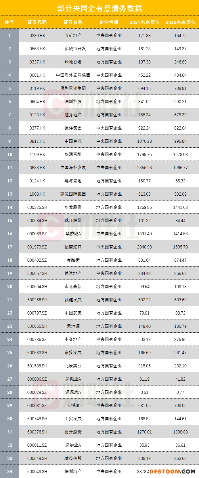 据记者不完全统计,伴随部分央国企持续拿地,截至2021年末包括保利发展、华润置地、越秀地产、建发国际、招商蛇口、中国海外发展、中交地产等20家央国企有息负债,同比均出现不同程度上涨。央国企规模越大,相应有息负债规模增加越多。