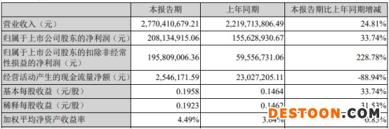 2022年第一季度,创维集团基本每股收益0.1958元/股,同比增长33.74%;加权平均净资产收益率4.49%,比上年同期增长0.85个百分点。
