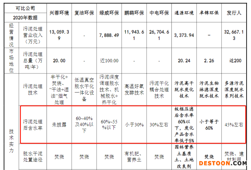科创板首轮问询回复显示,国泰环保同行业公司的污泥处理后含水率高于或与国泰环保水平相近。2020年,鹏鹞环保、中电环保和复洁环保的污泥处理后含水率分别为小于30%、30%左右、60%-40%及40%以下,上述同行业公司较国泰环保相比污泥处理后含水率更低。