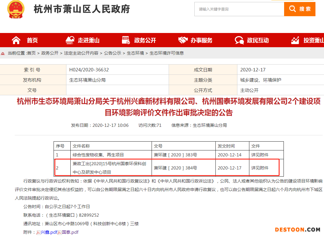 同时,该项目已在萧山区发展和改革局备案,已取得萧环建[2020]384号环评批复。杭州市萧山区人民政府公布的环评批复文件显示,该地块的文号为萧政工出[2020]15号。