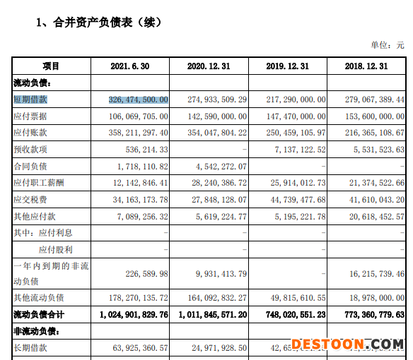 从公司的资产负债表来看,亚通精工IPO有其急迫性。报告期各期末(2018年末至2021年6月末),亚通精工资产总额分别为13.69亿元、15.02亿元、19.41亿元、20.79亿元;负债总额分别为8.63亿元、7.99亿元、10.51亿元、11.04亿元;资产负债率分别为63%、53%、54%、53%。亚通精工流动比率分别为1.05、1.24、1.23、1.28;速动比率分别为0.69、0.85、0.86、0.93。流动比率始终低于2、速动比率始终低于1,说明公司偿债能力较弱。