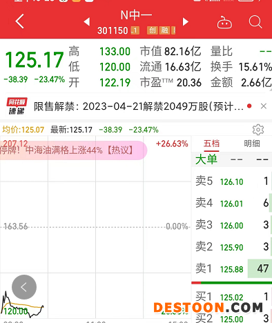 交易行情显示,中一科技4月21日大幅低开25.29%,开盘价122.19元/股,公司首发价格163.56元/股。据计算,若投资者中一签且在开盘位置卖出,亏损2万元。