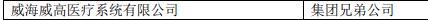 山东威高骨科材料股份有限公司(简称“威高骨科”,688161.SH)年报显示,威海威高医疗系统有限公司为其集团兄弟公司。威高股份为威高骨科之控股股东,威高集团为威高股份之控股股东,威海威高国际医疗投资控股有限公司为威高集团之控股股东。