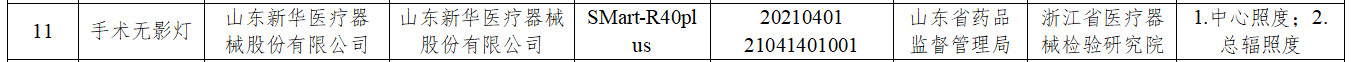 标示注册人、代理人为山东新华医疗器械股份有限公司(简称“新华医疗”,600587.SH)的手术无影灯,抽检发现不符合标准规定项目为中心照度和总辐照度,规格型号为SMart-R40plus,生产日期/批号/出厂编号为20210401/21041401001。抽样单位为山东省药品监督管理局,检验单位为浙江省医疗器械检验研究院。