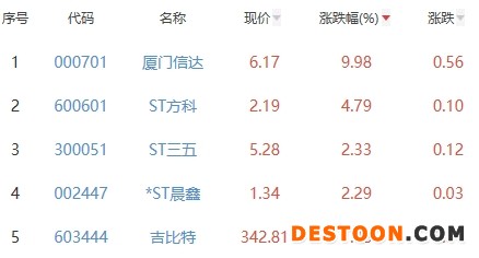 其中,厦门信达、ST方科、ST三五、*ST晨鑫、吉比特位列板块涨幅前五位,涨幅分别为9.98%、4.79%、2.33%、2.29%、1.88%。