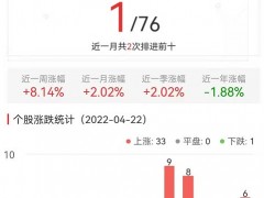 中国经济网北京4月22日讯 今日,纺织制造板块整体涨幅6.20%,其中33只股票上涨,1只股票下跌。