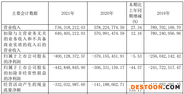 中国经济网北京4月22日讯 昨晚,精进电动(688280.SH)披露的2021年年度报告显示,公司去年实现营业收入7.36亿元,同比增长27.34%;归属于上市公司股东的净利润为-4.00亿元,上年同期为-3.79亿元;归属于上市公司股东的扣除非经营性损益的净利润为-4.43亿元,上年同期为-3.06亿元;经营活动产生的现金流量净额为-3.32亿元,上年同期为-1.41亿元。