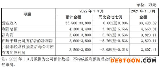 2022年1-3月,欧圣电气预计营业收入33,500万元-33,800万元,同比增长0.00%至0.90%;预计净利润3600万元-3800万元,同比下降5.76%至0.53%;预计扣非后归母净利润3500万元-3600万元,同比下降2.98%至0.21%。