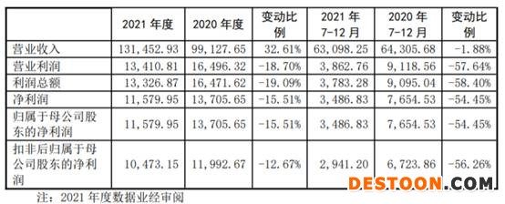 2021年,欧圣电气实现营业收入131,452.93万元,同比增长32.61%;净利润为11,579.95万元,同比下降15.51%;扣除非经常性损益后归属于母公司所有者的净利润为10,473.15万元,同比下降12.67%;经营活动产生的现金流量净额为10,690.61万元,同比下降47.64%。