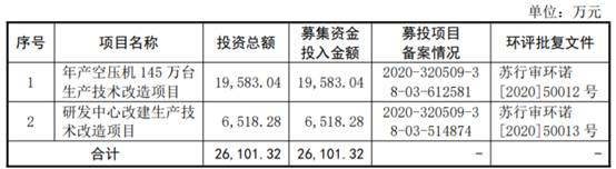 欧圣电气本次发行募集资金总额为97,375.72万元,扣除发行费用后募集资金净额为89,331.02万元,公司最终募集资金净额比原计划多63229.70万元。欧圣电气4月15日披露的招股说明书显示,公司拟募集资金26,101.32万元,用于年产空压机145万台生产技术改造项目、研发中心改建生产技术改造项目。