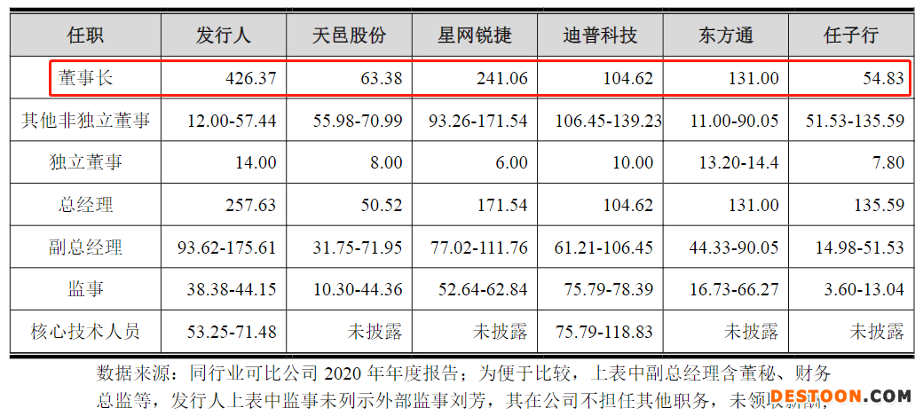 2020年,浩瀚深度董事长薪酬为426.37万元,虽较2019年比有所下降,但仍远超同行业可比公司董事长薪酬水平。