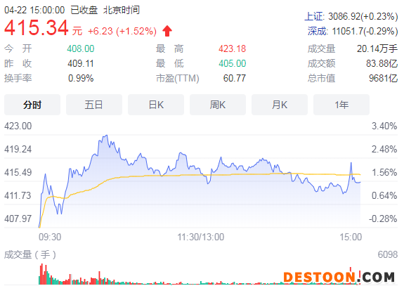 4月21日盘中,宁德时代股价失守400元关口,股价最低为398.90元/股,为去年6月以来新低。 4月20日,宁德时代股价大跌7.55%,市值跌破1万亿元。自2021年12月3日,宁德时代股价最高达692元/股,创上市以来新高。此后,宁德时代股价便持续下挫;截至4月22日收盘,宁德时代报415.34元/股,至今已跌近40%,市值蒸发约6000亿元。