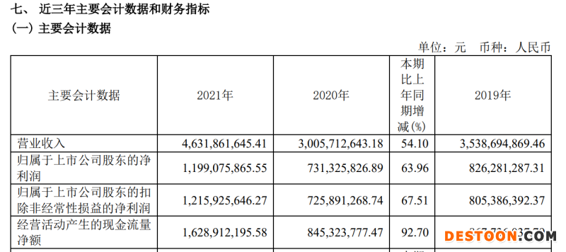 4月22日晚间,水井坊发布2021年财报,实现营业收入46.32亿元,同比增长54.1%;净利润11.99亿元,同比增长63.96%。