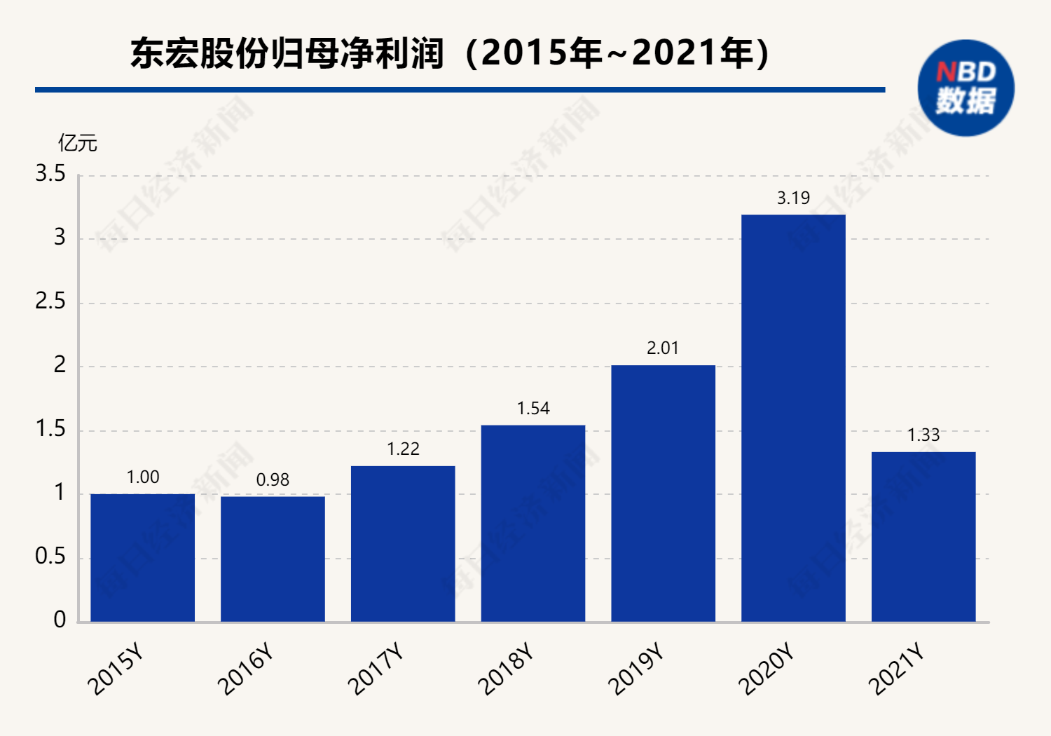 在2020年度净利大增近六成后,东宏股份(603856,SH)2021年业绩又被“打回原形”。