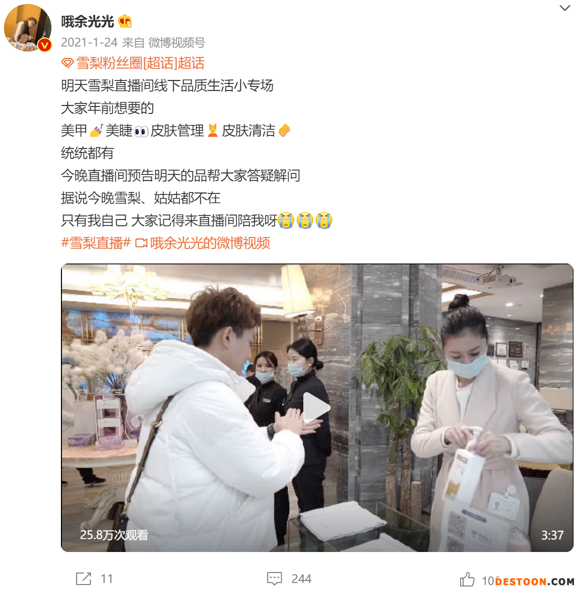 雪梨助播团队则于今年2月份开启直播间,新账号“光光来了”后改名为“香菇来了”,其成员“余光光”曾多次亮相雪梨直播间。