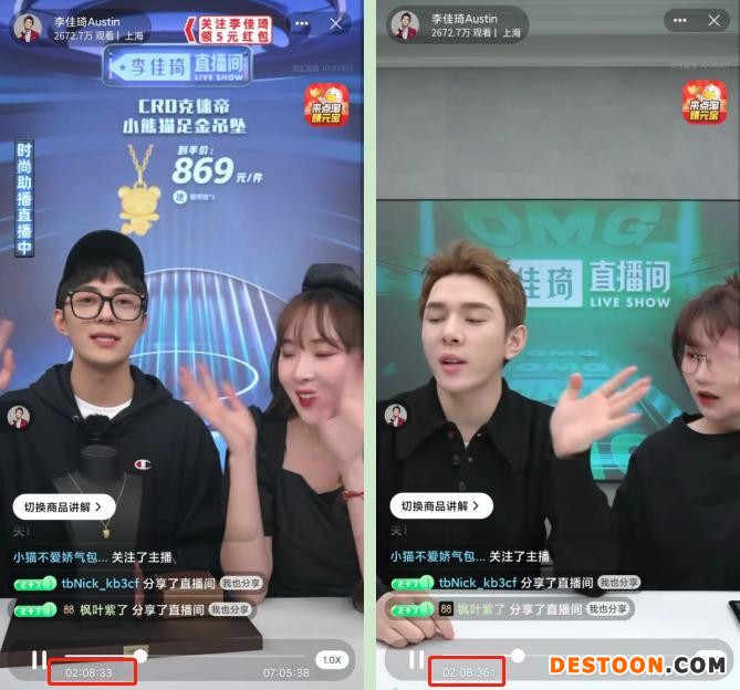 李佳琦直播间,先由助播热场两小时,李佳琦再来播 图片来源:李佳琦直播间视频截图