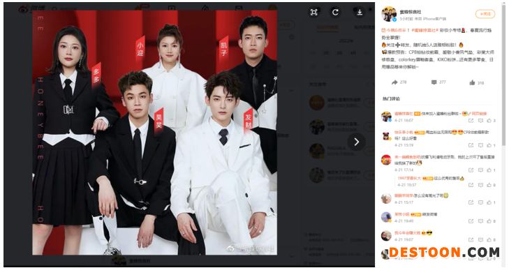 当前,在淘宝的又一新晋头部直播间“蜜蜂惊喜社”,可以看到薇娅直播间熟悉的身影。由昊昊、凯子、发财、小涵、多多、小迎六位年轻主播组成的主播团中,有五位都曾是原薇娅直播的助播团成员。2021年年底,薇娅受到处罚前,薇娅直播间在小红书上的相关账号“薇娅惊喜社”曾多次发布助播团动态,昊昊、凯子、发财、多多、小涵都位列其中。