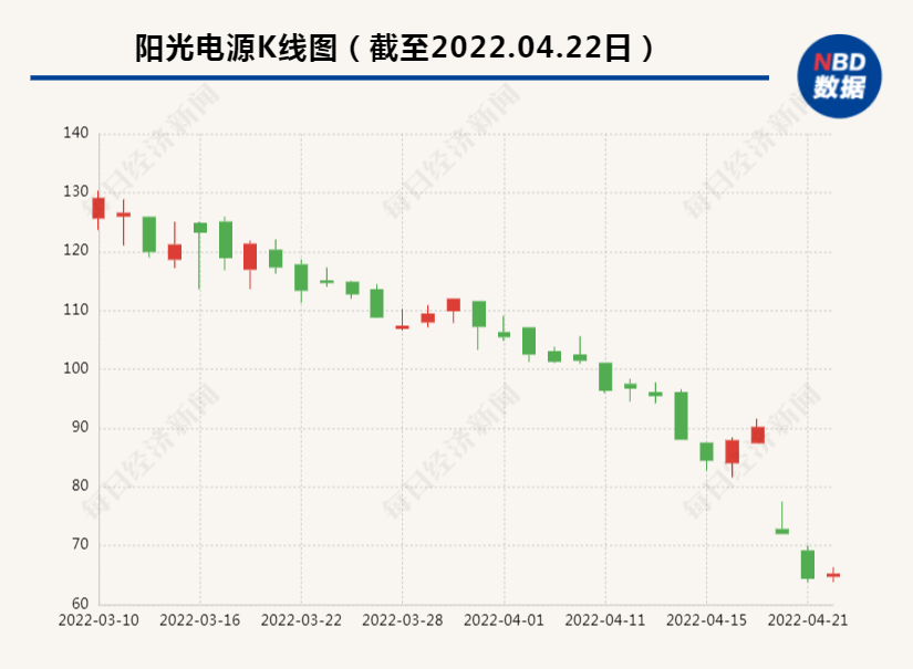 市场层面,阳光电源3月10日报129元/股,今天(4月22日)报65.15元/股,一个多月的时间内,市值蒸发948.2亿元。截至发稿,阳光电源市值跌破千亿,为967.6亿元。