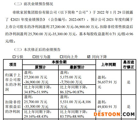 帝欧家居(002798)预盈过亿变几千万