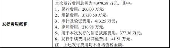 狄耐克本次上市发行费用为4979.59万元,其中保荐机构国信证券股份有限公司获得保荐承销费用3930.50万元。