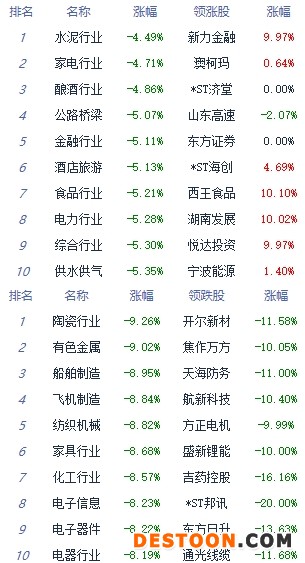 A股市场板块及个股涨跌幅排行