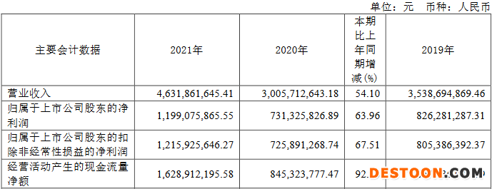 水井坊还于同日披露2021年年度报告。2021年,该公司实现营业收入46.32亿元,同比增长54.10%;实现归属于上市公司股东的净利润11.99亿元,同比增长63.96%;实现归属于上市公司股东的扣除非经常性损益的净利润12.16亿元,同比增长67.51%;经营活动产生的现金流量净额为16.29亿元,同比增长92.70%。