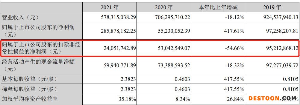 从业绩层面看,集采仍对海辰药业的业绩有着不小影响。数据显示,2021年,海辰药业实现营收5.78亿元,同比下滑18.12%,较2019年营收下滑37.51%;实现净利润2.86亿元,同比增长417.61%;实现扣非净利润2405.17万元,同比减少54.66%,较2019年扣非净利润下滑74.64%。