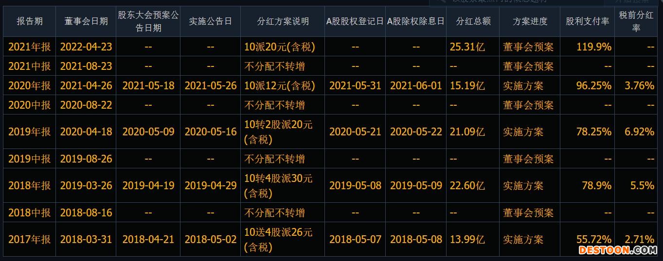 2020年低基数致去年高增长 热衷高比例分红