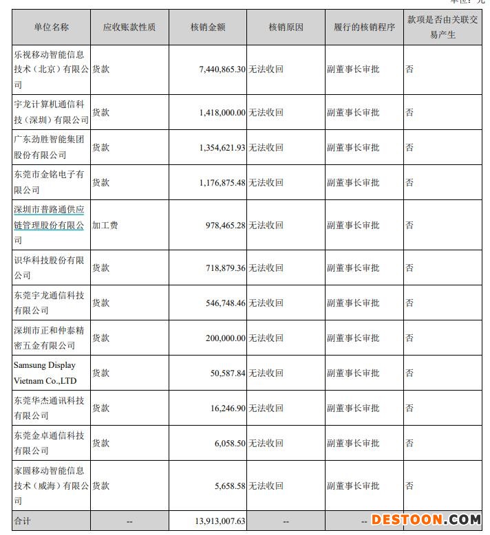 通常,若公司不能对应收账款进行有效控制,及时收回到期应收账款,则可能存在应收账款余额较大及无法收回的风险,从而对其未来经营业绩造成重大不利影响,诸如:乐视、宇龙计算机等公司期内所欠蓝思科技上千万元的货款,就已无法收回。