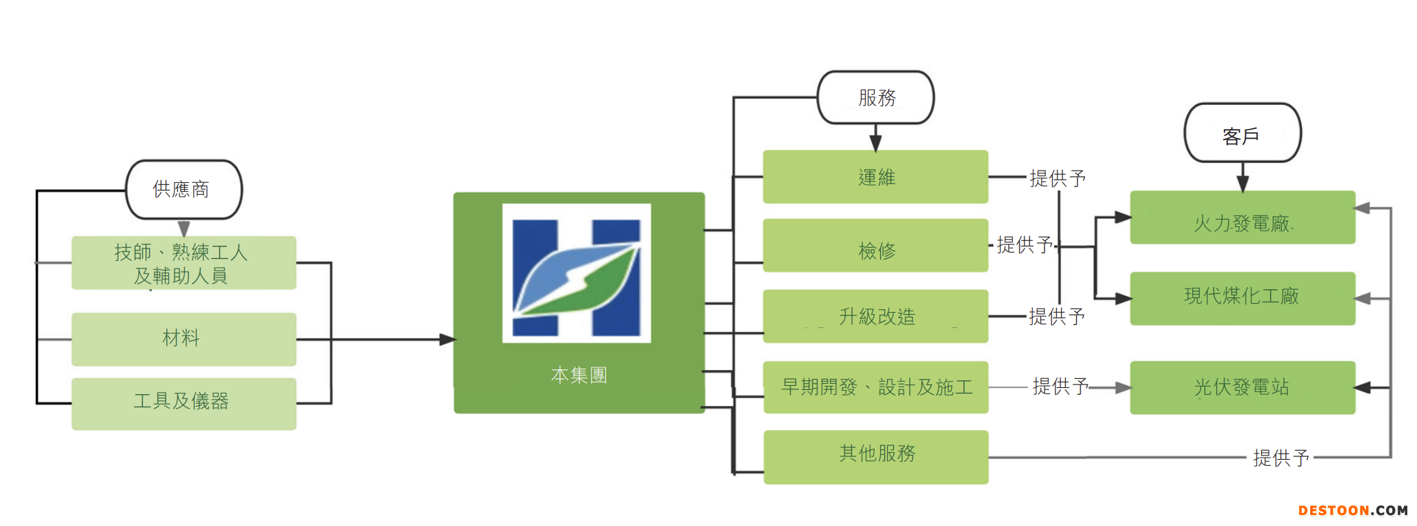 公司是火力发电能源行业和现代煤化工行业的民营服务供应商,亦为中国可再生能源业的参与者。公司主要提供第三方服务,包括运维、检修、升级改造、早期开发、设计及施工和其他服务。