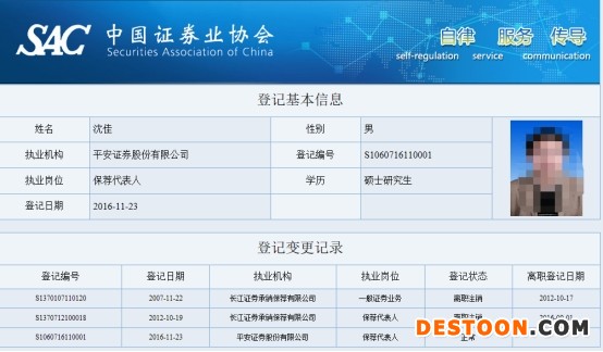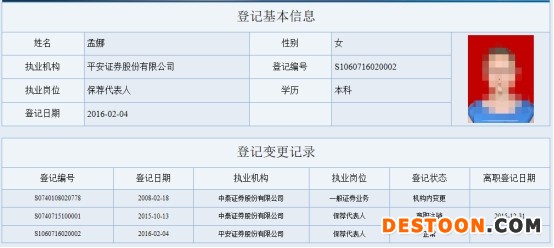 中证协网站显示,沈佳于2016年11月23日在平安证券股份有限公司登记的执业岗位为保荐代表人,目前的登记状态为正常;孟娜于2016年2月4日在平安证券股份有限公司登记的执业岗位为保荐代表人,目前的登记状态为正常。