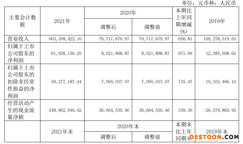 中国经济网北京4月26日讯 昨日,岩石股份(600696.SH) 披露了2021年年度报告。2021年,公司实现营业收入6.03亿元,比上年同期增长656.81%;归属于上市公司股东的净利润为6192.82万元,同比增长671.99%;归属于上市公司股东的扣非净利润为5927.72万元,同比增长735.47%;经营活动产生的现金流量净额为2.49亿元,同比增长339.36%。