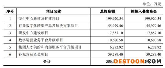 软通动力最终募集资金净额比原计划多8.42亿元,根据软通动力此前披露的招股说明书显示,公司拟募集资金35.00亿元,用于交付中心新建及扩建项目、行业数字化转型产品及解决方案项目、研发中心建设项目、数字运营业务平台升级项目、集团人才供给和内部服务平台升级项目、补充营运资金项目。