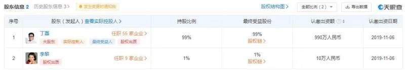 股东信息显示,丁磊为北京网易传媒有限公司最大股东,持股比例为99%,认缴出资额为990万元,李黎持股比例为1%,认缴出资额为10万元。