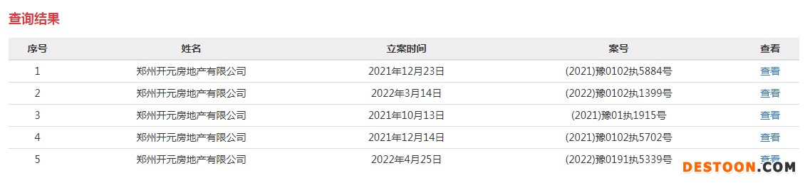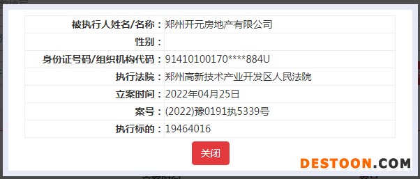 中国执行信息公开网信息显示,郑州开元房地产有限公司现有5条被执行信息,累计被执行金额高达2200.52万元。