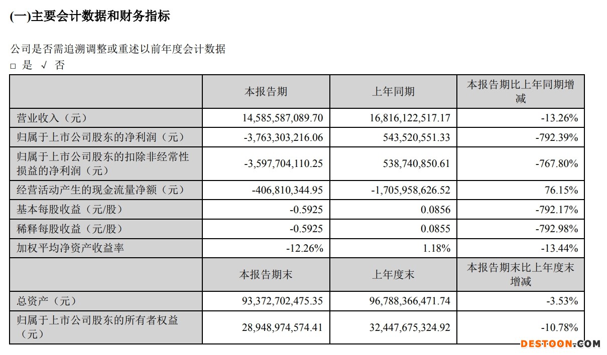 中新经纬4月26日电 26日盘后,头部猪企首份2022年一季度财报公布,温氏股份净亏37.6亿元。