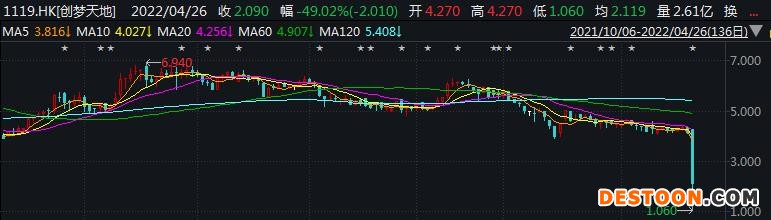 26日,创梦天地股价盘中巨幅波动,一度跌超70%。截至当日收盘,公司股价仍跌超49%。