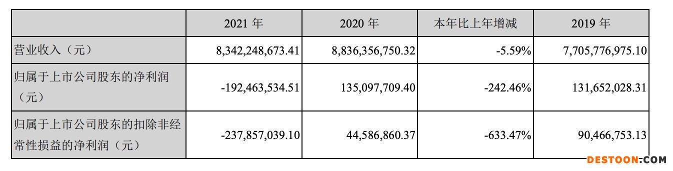 2021年正式年报显示,华统股份全年实现营业收入83.42亿元,同比减少5.59%;净利润则亏损1.92亿元,同比下降242.46%,为2017年上市后首亏。
