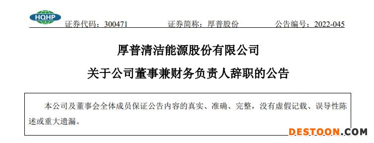 高层人事变动 公司董事兼财务负责人辞职