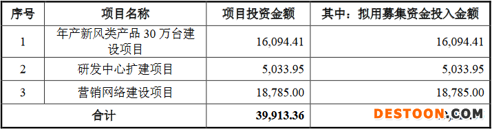 绿岛风本次募集资金总额为4.55亿元,扣除发行费用后,募集资金净额为4.11亿元。绿岛风最终募集资金净额比原计划多1220.32万元。绿岛风2021年7月23日披露的招股说明书显示,该公司拟募集资金3.99亿元,计划分别用于年产新风类产品30万台建设项目、研发中心扩建项目、营销网络建设项目。