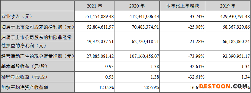中国经济网北京4月27日讯 绿岛风(301043.SZ) 昨日晚间披露2021年年度报告。报告期内,该公司实现营业收入5.51亿元,同比增长33.74%;实现归属于上市公司股东的净利润5280.46万元,同比下降25.08%;实现归属于上市公司股东的扣除非经常性损益的净利润4937.20万元,同比下降21.28%;经营活动产生的现金流量净额为2788.51万元,同比下降73.98%。