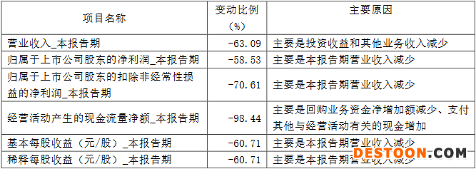 海通证券解释称,报告期内,公司营业收入减少主要是由于投资收益和其他业务收入减少;归属于上市公司股东的净利润和归属于上市公司股东的扣除非经常性损益的净利润减少主要是由于报告期营业收入减少;经营活动产生的现金流量净额同比下滑主要是由于回购业务资金净增加额减少、支付其他与经营活动有关的现金增加。
