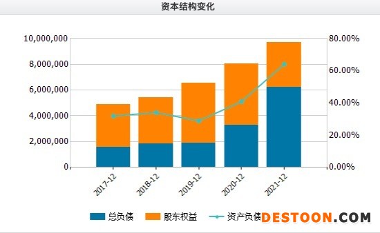 但与之前几年相比,其资金负债率大幅攀升。历年财报显示,从2018年到2021年,温氏股份资金负债率分别为:34.1%、28.8%、40.9%、64%。